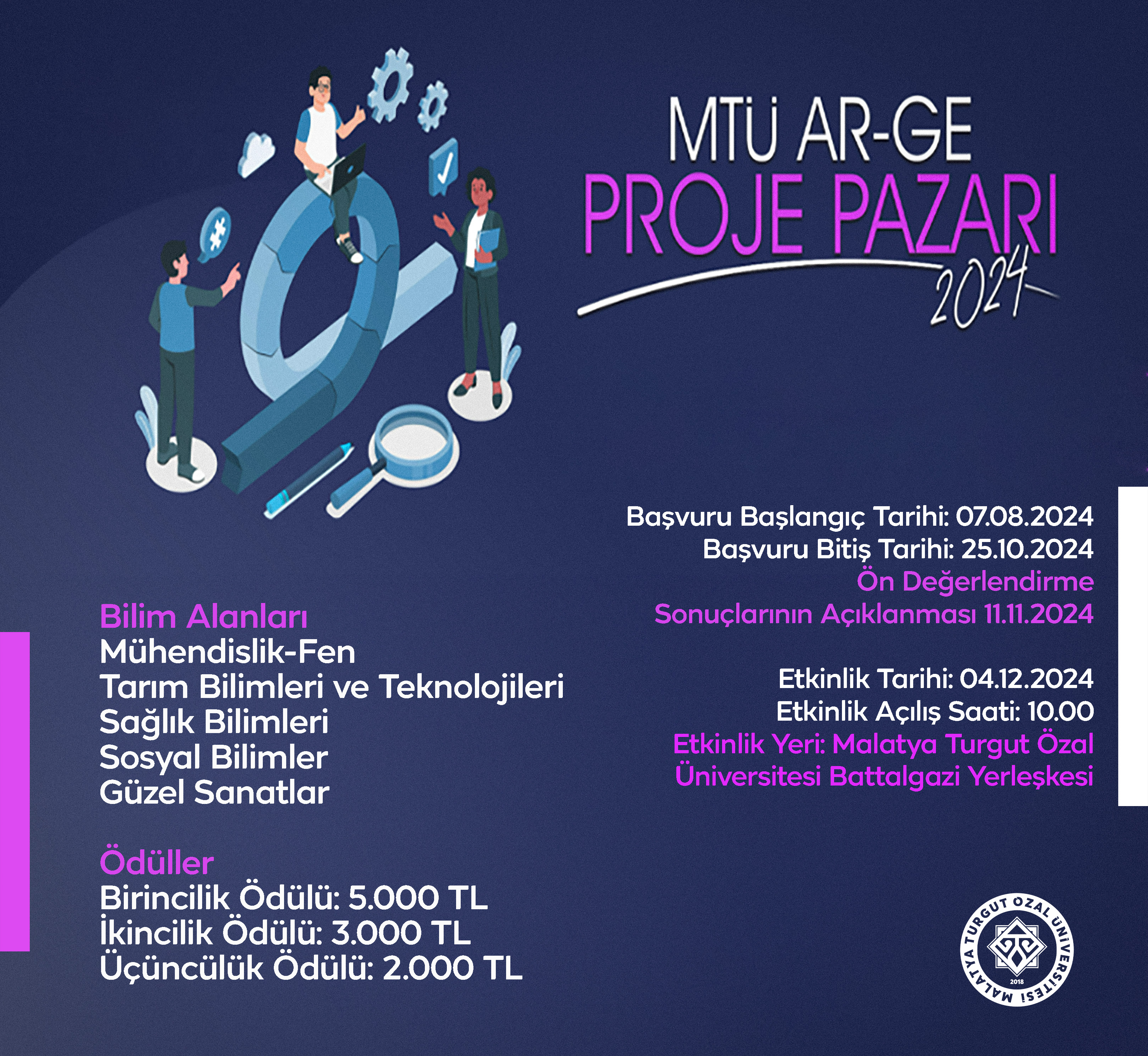 MTÜ AR-GE Proje Pazarı Üniversitemizin 4 Aralık 2024 tarihinde ilkini düzenleyeceği "MTÜ AR-GE PROJE PAZARI" ...